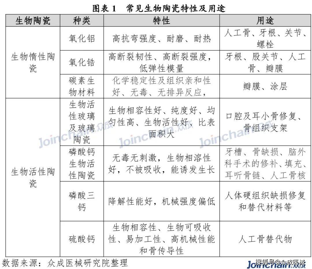 生物陶瓷产业作为新兴产业,在现有生物材料科学和工业发展基础下,展现出与众不同的产业活力。在医疗器械方面,生物陶瓷的应用,从无源植入物延伸至物理治疗器械、注输、护理和防护器械领域。在药物方面,由于独特的化学特性,生物陶瓷成为药物的良好载体。在环境功能方面,生物陶瓷在重金属吸附领域表现出色,是优秀的工业无机吸附剂。未来,生物陶瓷的应用范围逐渐扩大。